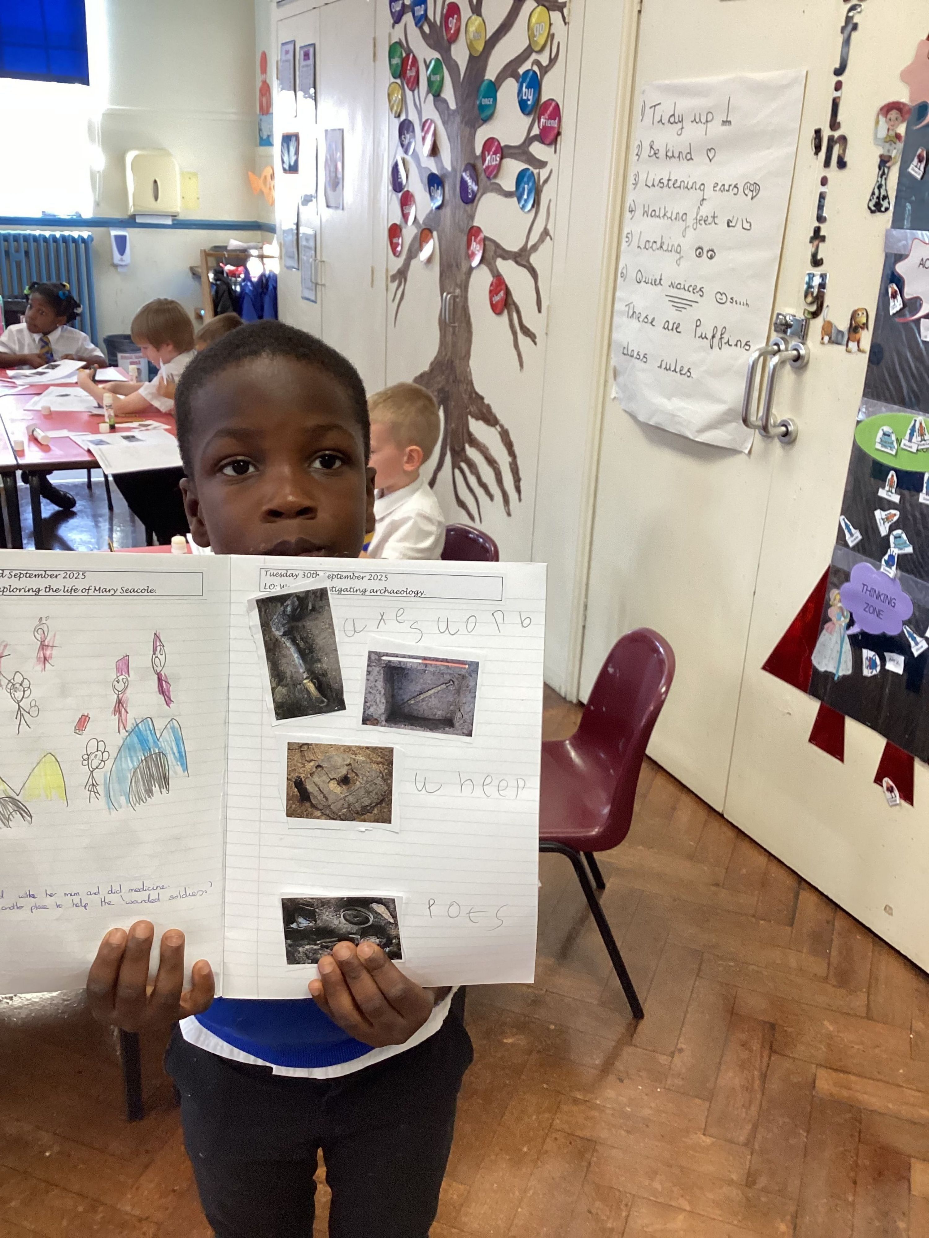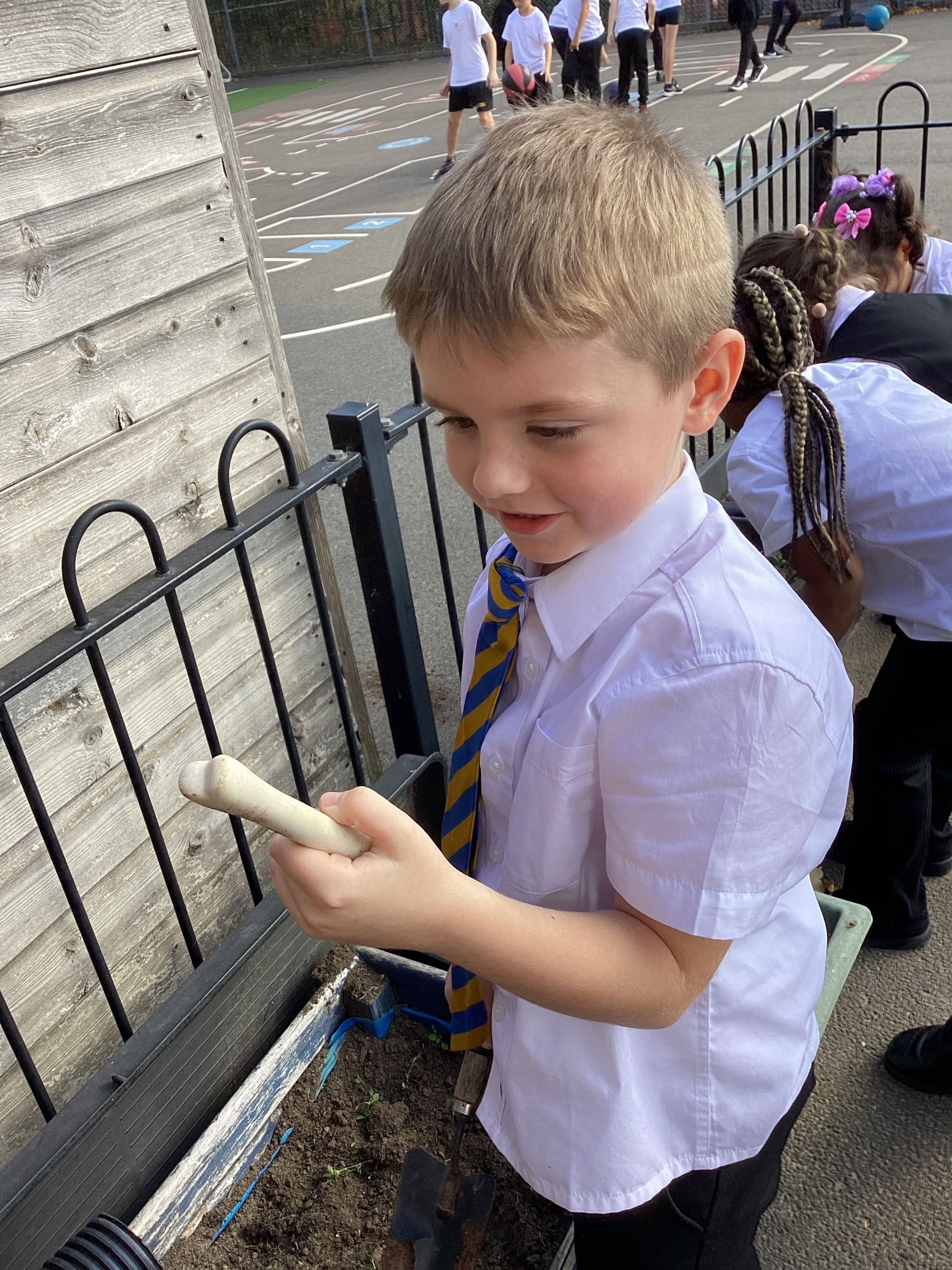 This week we explored archaeological finds. We looked at some finds from Must Farm and discussed their use and what it told us about the way people lived. We also had a go at doing our own archaeological dig.
