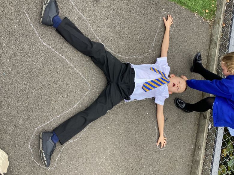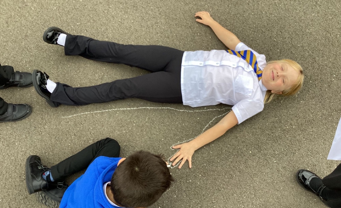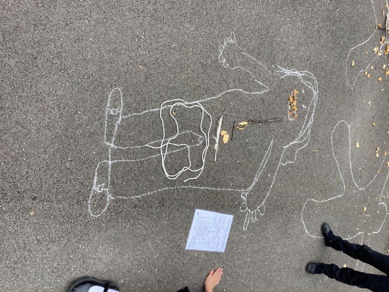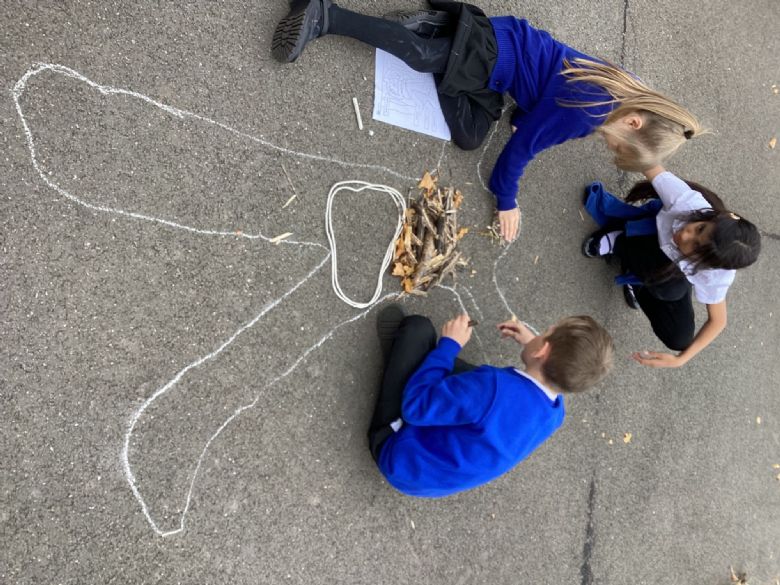 In outdoor learning this week, the children have been using what they have been learning to create a natural representation on the digestive system using string and whatever they could find in the environment. They drew around themselves first to create the outline they needed. It was a lot of fun and made the children think about the different organs.